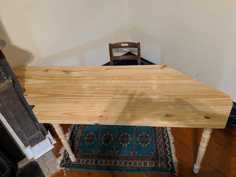 Those skinny legs really bugged me, so back to the hardware store I went and replaced them with with more substantial table legs. Lemme tell you, table legs are quite expensive for what they are.